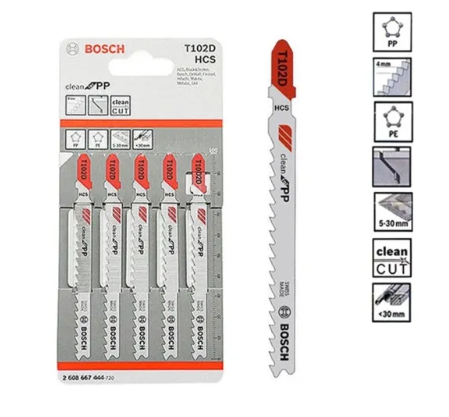 BOSCH 5pcs T102D Jigsaw Blades Clean For PP & PE Cutting