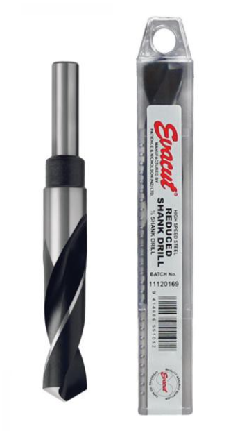 The Evacut Reduced Shank Drill is designed to increase the drilling capacity of drill chucks and for slow speed (350RPM or less), large scale boring.